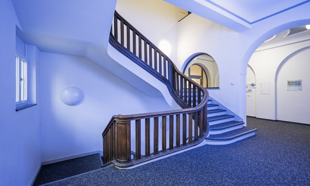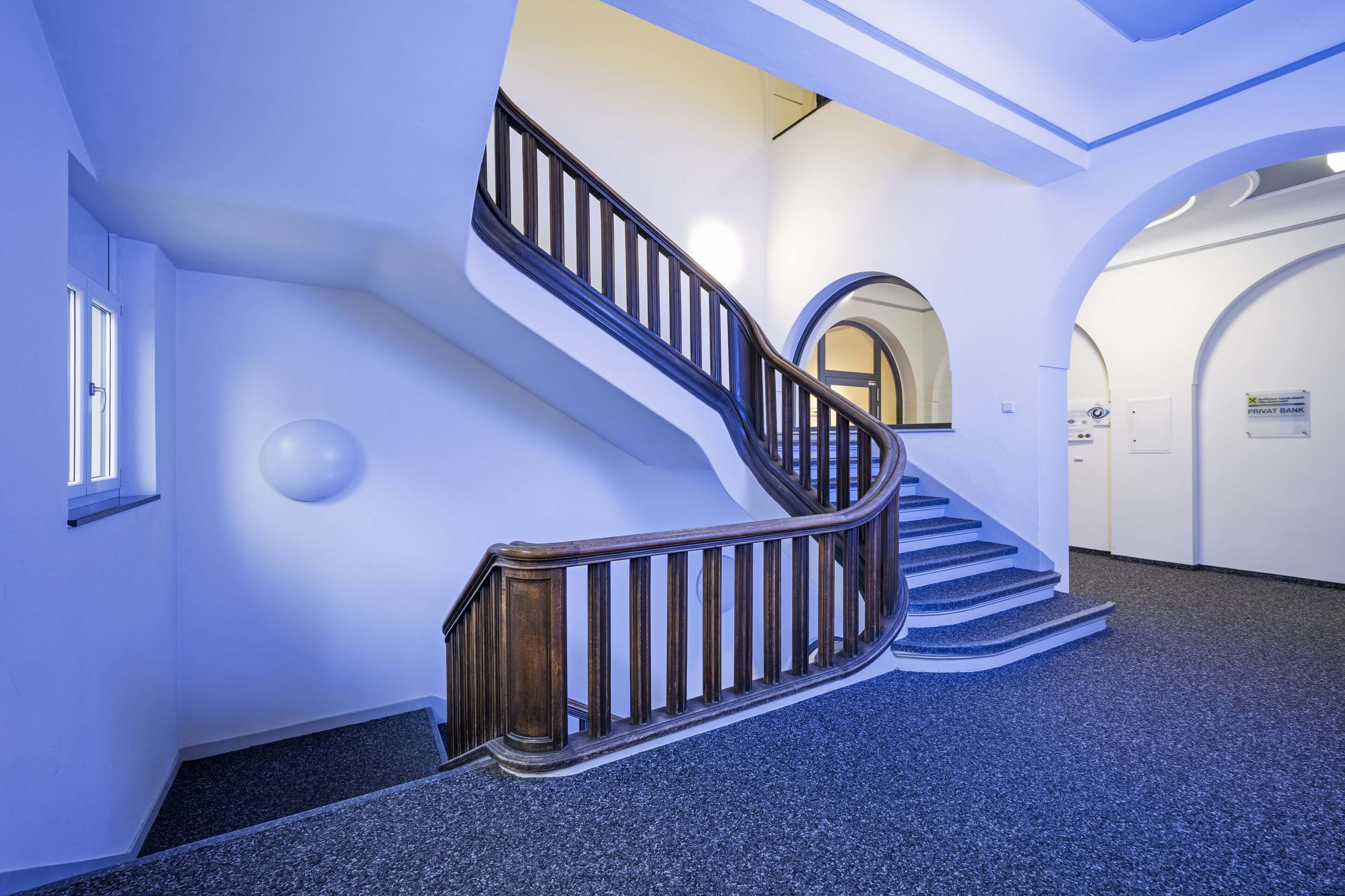 Bereits Einhundert Jahre alt markiert dieses Denkmalgeschützte Objekt den Eingang vom Berliner Ring in die Schweinfurterstraße. Hier trifft der Stil und die Eleganz des Alten auf die Moderne des Büroalltags und entwickeln so eine einzigartige Atmosphäre.